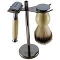 COMPLETE SHAVING KIT Includes everything you need to get started wet shaving. PREMIUM QUALITY: Our brush won't shed excessively or retain a foul odor. The razor is a hefty 2.5oz and feels substantial in the hand. The stand is heavy-duty, and balanced to hold your gear. Closer, IRRITATION FREE Shaving: The process of using a badger hair brush prepares your face for a great shave, and the safety razor gives you a custom shaving angle. Avoid a One-Size-Fits All Shave that results in Razor Burn and Ingrown Hairs!