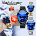 - 【Unique design】: 3D cutting mirror and Cool design, Also features signature revolving disc movement which shows the hours and minutes as well as a multi-coloured second counter.The signature lazer glass is iridescent and may appear different shades of colour under different light, and is an ornament that is loved by the men's watch.