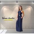 Women Sleeve Less Maxi Dress Blue Size, Extra Large