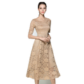 Minimum quantity for "Women's Aline Dress Round Neck Half Sleeve Hollow-Out Decor Floral Pattern Lace Mid Calf Dress" is 1.
