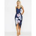 Women's Aline Dress V Neck Short Knee Sleeve Floral Pattern Pastoral Style Midi Blue Dress