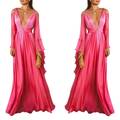 Y&D Evening Dress, Deep V Neck Long Sleeve Skirt