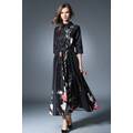 Y&D Fashion Floral Pattern Maxi Long Dress For Women, Black