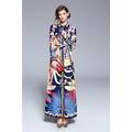 Y&D Maxi Shirt Neck Print Pattern Full Sleeve Straight Dress For Women Multi Color