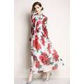 Y&D Mid Calf Shirt Neck Floral Pattern Full Sleeve Dress For Women Multi Color