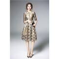 Y&D Mid Calf Shirt Neck Solid Pattern Full Sleeve Dress For Women Gold Color