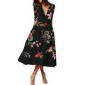 Y&D V Neck Floral Print Short Sleeve Dress For Women
