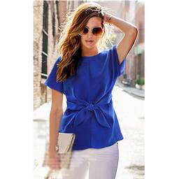 Y&D Women's Round Neck Bowknot Decoration Fashion Chiffon Blouse